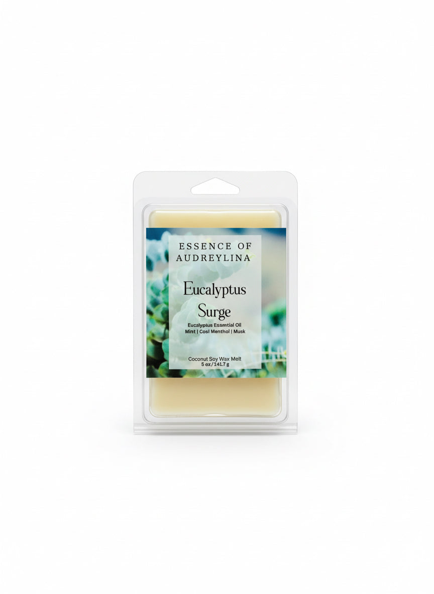 Eucalyptus Surge fills your space with a crisp, cooling burst of herbal freshness. Sharp peppermint blends with clean eucalyptus, warm clove, and soft woods. Powdery vanilla and patchouli add calm and balance. This scent refreshes the air and brings a breath of pure clarity indoors.